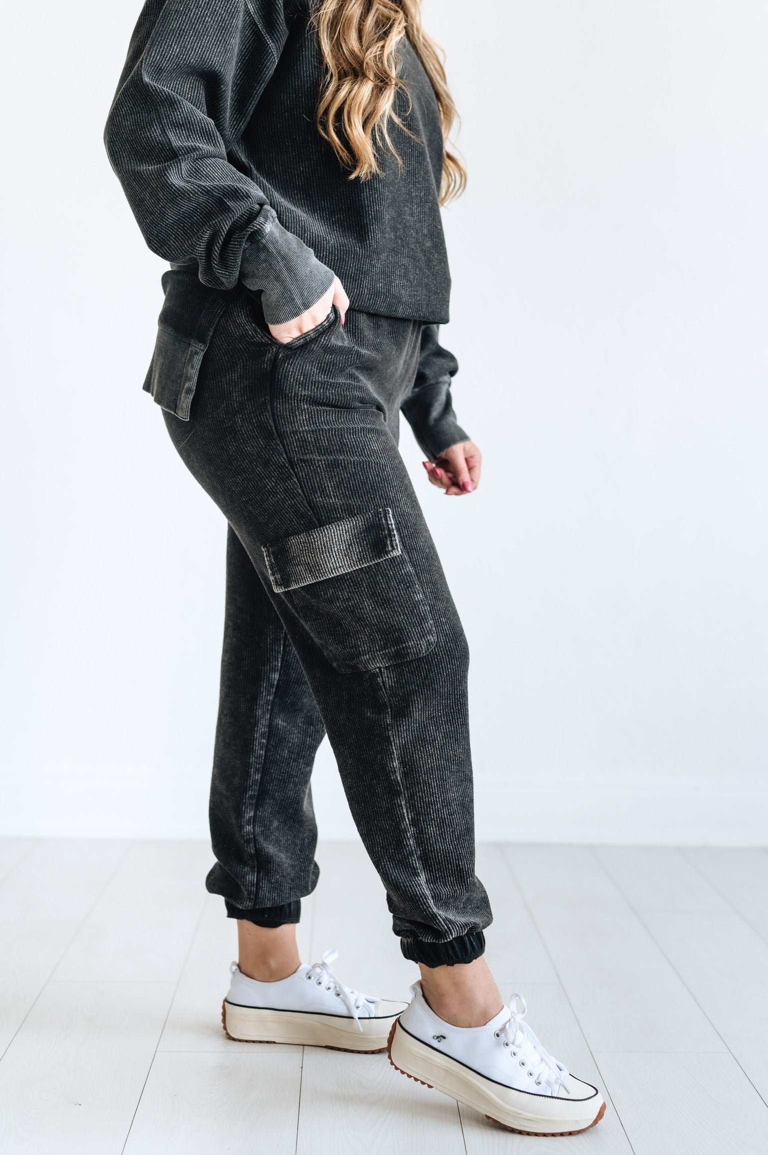 CORDED JOGGER - WASHED BLACK - INSTOCK